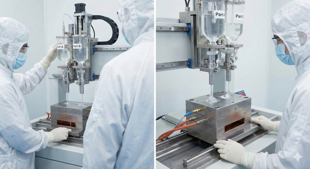 The manufacturing process for medical grade silicone components must prioritize purity and precision at every stage. Automated liquid injection molding (LIM) is the standard, where components are mixed in a 1:1 ratio and shot into heated molds. This process is inherently cleaner than traditional rubber molding because the material remains in a closed system until it is cured.