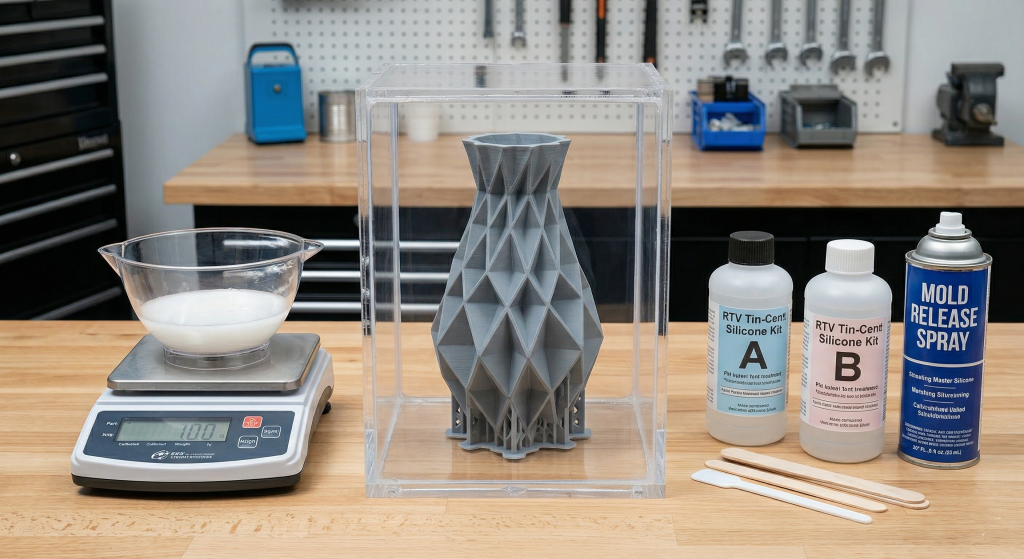 To make Silicone Molds, you need liquid silicone parts A and B, a master model, mixing containers, stirring sticks, and mold release spray. Gathering the right supplies before you begin ensures a smooth and uninterrupted workflow during the time-sensitive pouring phase. You will also need rigid materials to construct the containment box around your master object to prevent the heavy liquid from escaping.