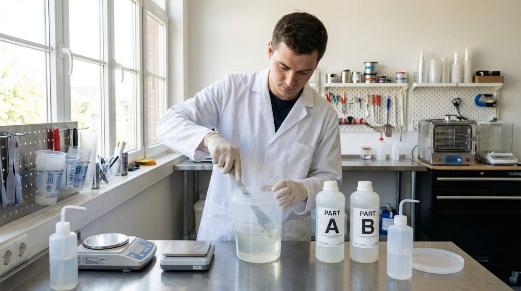 Incomplete mixing is the leading cause of “tacky” molds that never fully harden. You must be diligent in reaching the bottom and corners of your mixing vessel to ensure a homogenous blend.