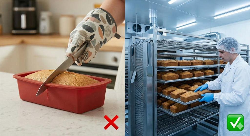 Slicing food directly inside flexible molds creates microscopic cuts instantly. Here is the reality: those tiny scratches trap bacteria and ruin non-stick qualities. Always remove baked goods before cutting them into portions.