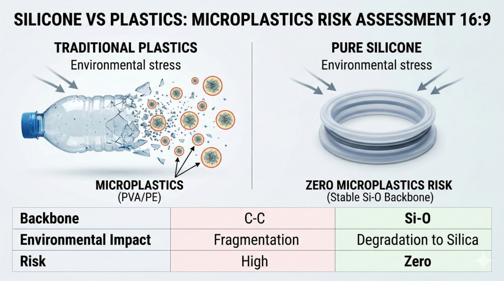 Traditional plastics rely entirely on carbon-based petrochemical backbones. What’s the real story? Silicone utilizes a strong silicon-oxygen backbone instead. This fundamental difference prevents standard plastic degradation pathways completely.