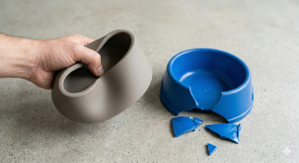 Plastic bowls are prone to cracking if dropped or stepped on, often leading to immediate disposal. Silicone’s inherent flexibility allows it to absorb impact, making it virtually unbreakable in standard household and travel environments.
